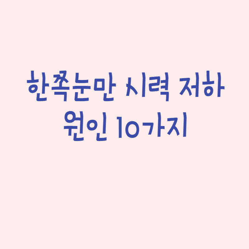 한쪽 눈만 시력 저하 원인 10가지